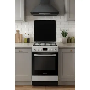 KERNAU KFC 5081 GE CI X to wszechstronna kuchenka wolnostojąca z piekarnikiem elektrycznym, która łączy solidne wykonanie z nowoczesnymi rozwiązaniami technologicznymi. Wyposażona w 4 palniki gazowe, piekarnik o pojemności 62 L oraz klasę energetyczną A, zapewnia efektywne gotowanie i pieczenie przy niskim zużyciu energii.