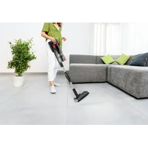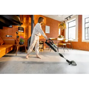 To odkurzacz 2w1, który łączy w sobie funkcjonalność odkurzacza pionowego i ręcznego. Teleskopowa rura pozwoli Ci odkurzyć wszystkie podłogi i dywany w mieszkaniu. Natomiast, gdy ją odłączysz, uzyskasz odkurzacz ręczny, z pomocą którego odkurzysz meble tapicerowane i bez trudu dotrzesz w trudno dostępne miejsca. Do dyspozycji masz parę poziomów mocy, dzięki czemu możesz dobrać siłę ssania do stopnia zabrudzeń albo rodzaju sprzątanej powierzchni. Standardowy tryb pracy świetnie sprawdza się do codziennego odkurzania. Z kolei do usunięcia kociej lub psiej sierści konieczne mogą być wyższe obroty. Ten sprzęt ma zasilanie akumulatorowe, dzięki czemu zapewnia bezprzewodowe odkurzanie. Dzięki niemu z powodzeniem dotrzesz do miejsc, do których kiedyś dostęp blokował Ci przewód zasilania.