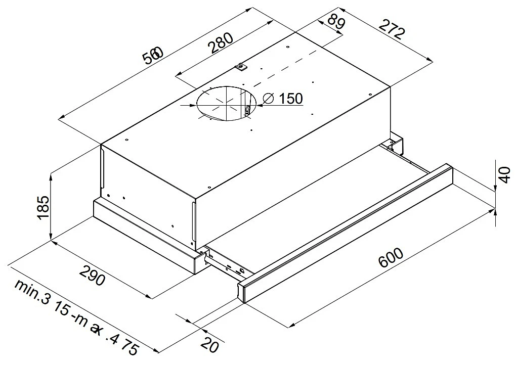 - Wymiary (W x S x G) mm: 185 x 600 x 310-480 mm