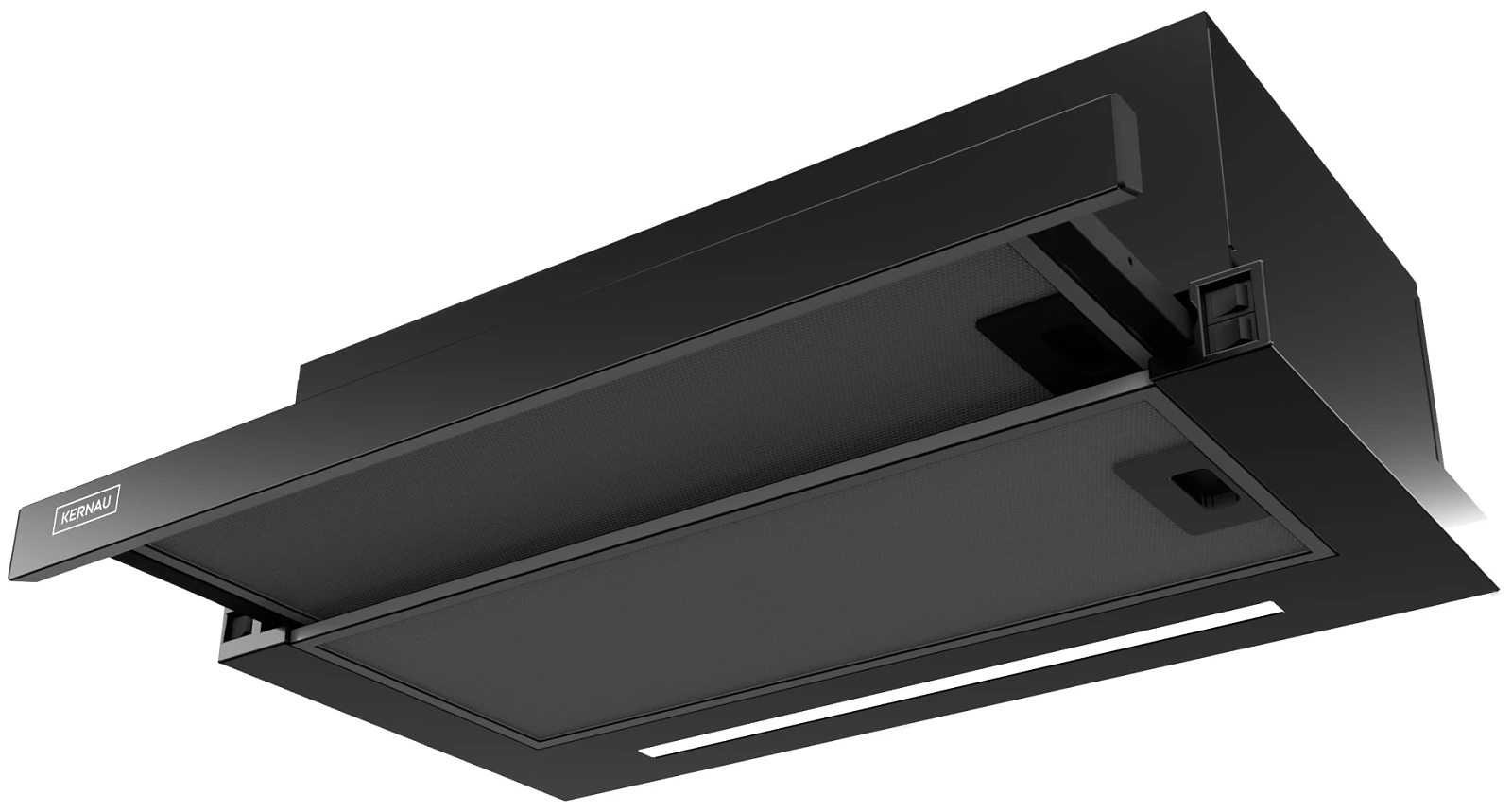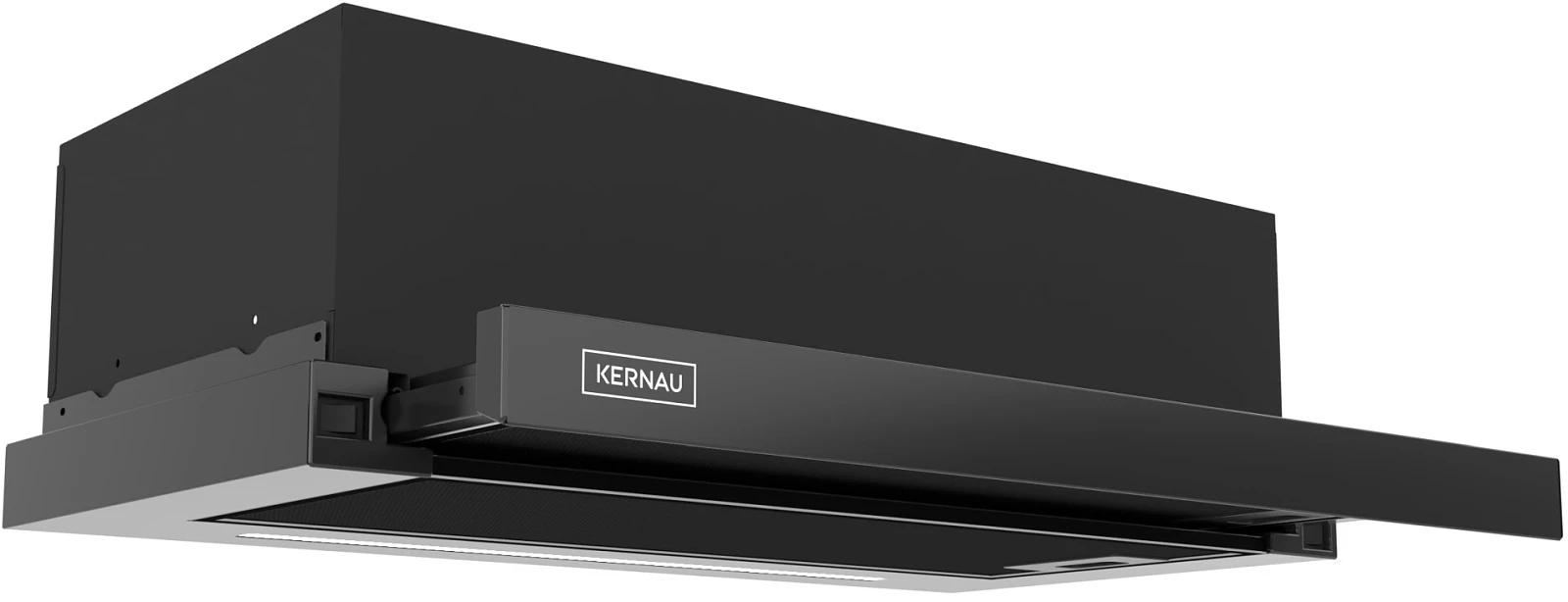 Model KTH 10.261.2 B marki Kernau to niewielki, ale funkcjonalny okap teleskopowy. Jego cechą charakterystyczną jest wysuwana szuflada, która zwiększa powierzchnię pochłaniającą powietrze. Szerokość urządzenia wynosi 60 cm, dlatego dobrze sprawdzi się nawet nad klasyczną 4-palnikową płytą indukcyjną bądź gazową. Jego front wykonany jest ze szkła, a montowany w szafce kuchennej korpus jest w kolorze czarnym.