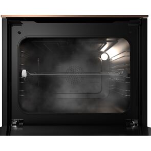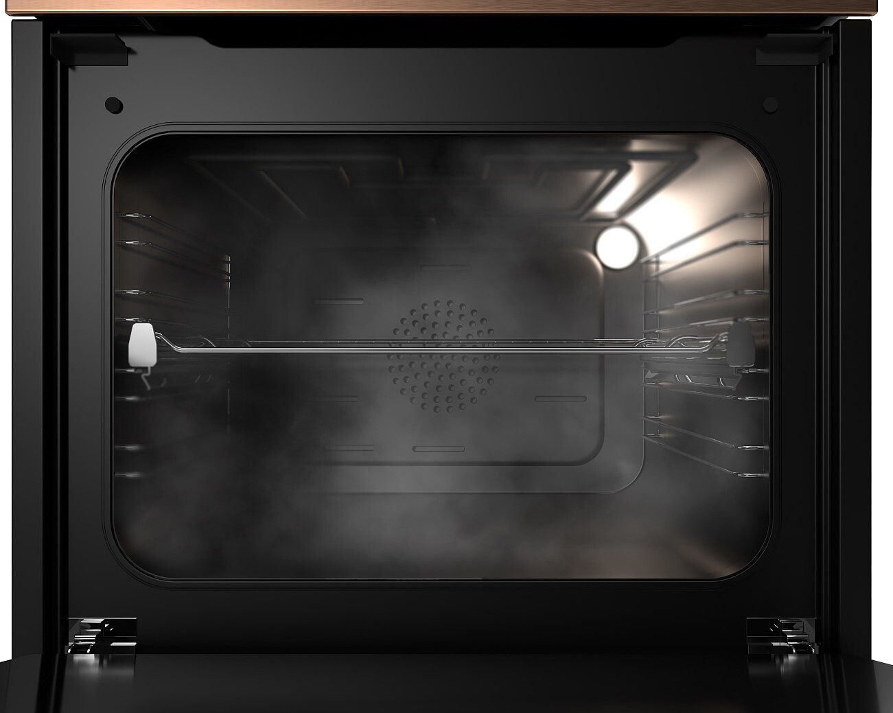 Potrójna szyba w drzwiach została zaprojektowana tak, by jej zewnętrza warstwa pozostawała chłodna, zapobiegając poparzeniu podczas przypadkowego dotknięcia. Dodatkowo dba o to system chłodzący. Prowadnica teleskopowa umożliwia całkowite wysunięcie blachy, bez konieczności wkładania rąk do rozgrzanego wnętrza.
