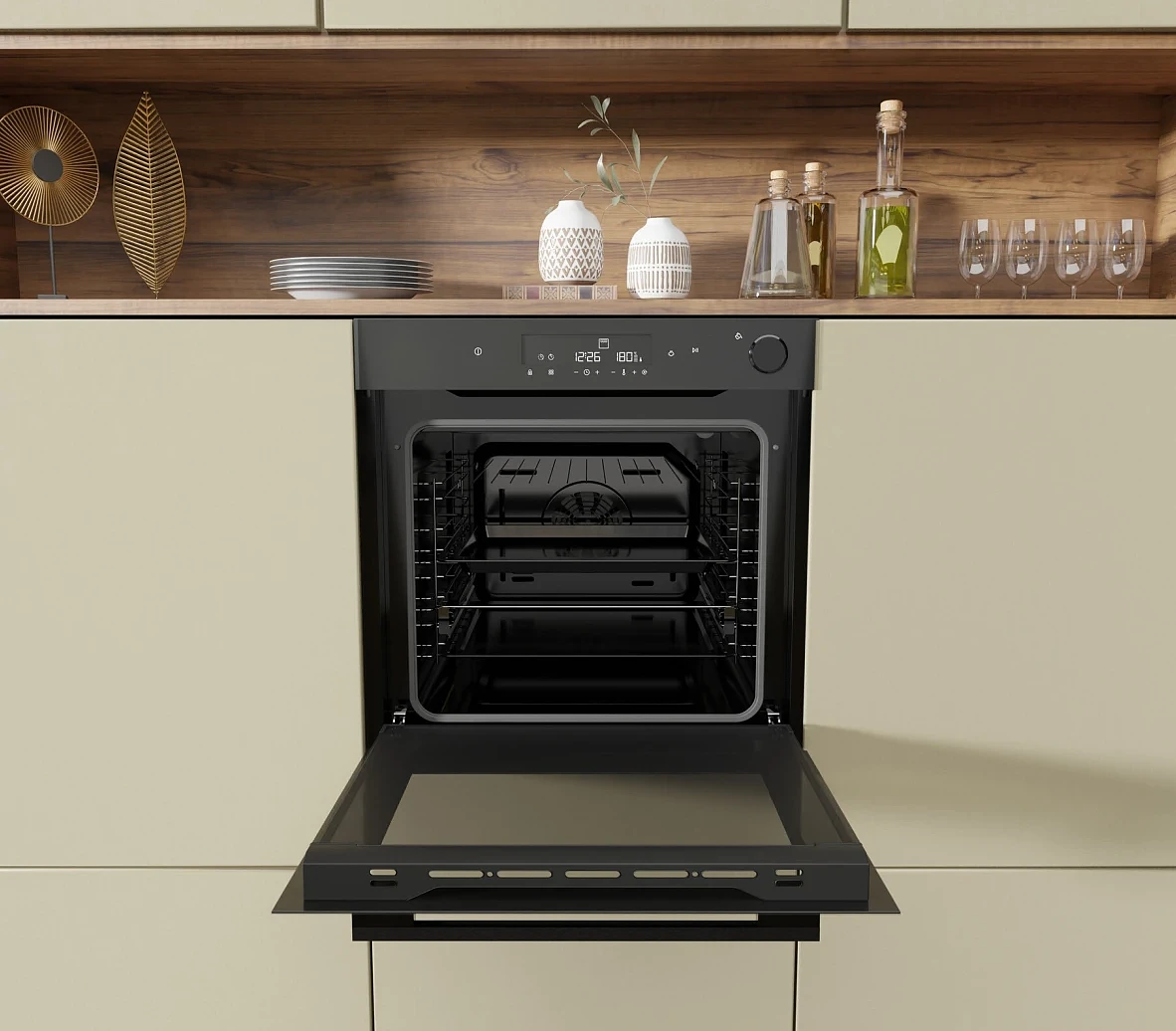 Popularna głębokość piekarnika pasuje do większości rodzajów mebli kuchennych. Przed jego wyborem sprawdź pojemność Twojej szafki, żeby dopasować go w wybrane miejsce. Pojemność piekarnika jest wystarczająca do standardowych zastosowań. Z łatwością przyrządzisz w nim dania dla wszystkich domowników. Sterowanie elektroniczne ułatwi Ci szczegółowe wybranie ciepła oraz programu pieczenia. Bieżące ustawienia zauważysz na wyświetlaczu, więc nie ma mowy o żadnej pomyłce.