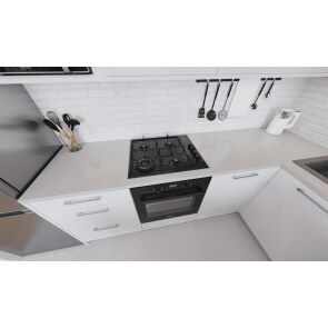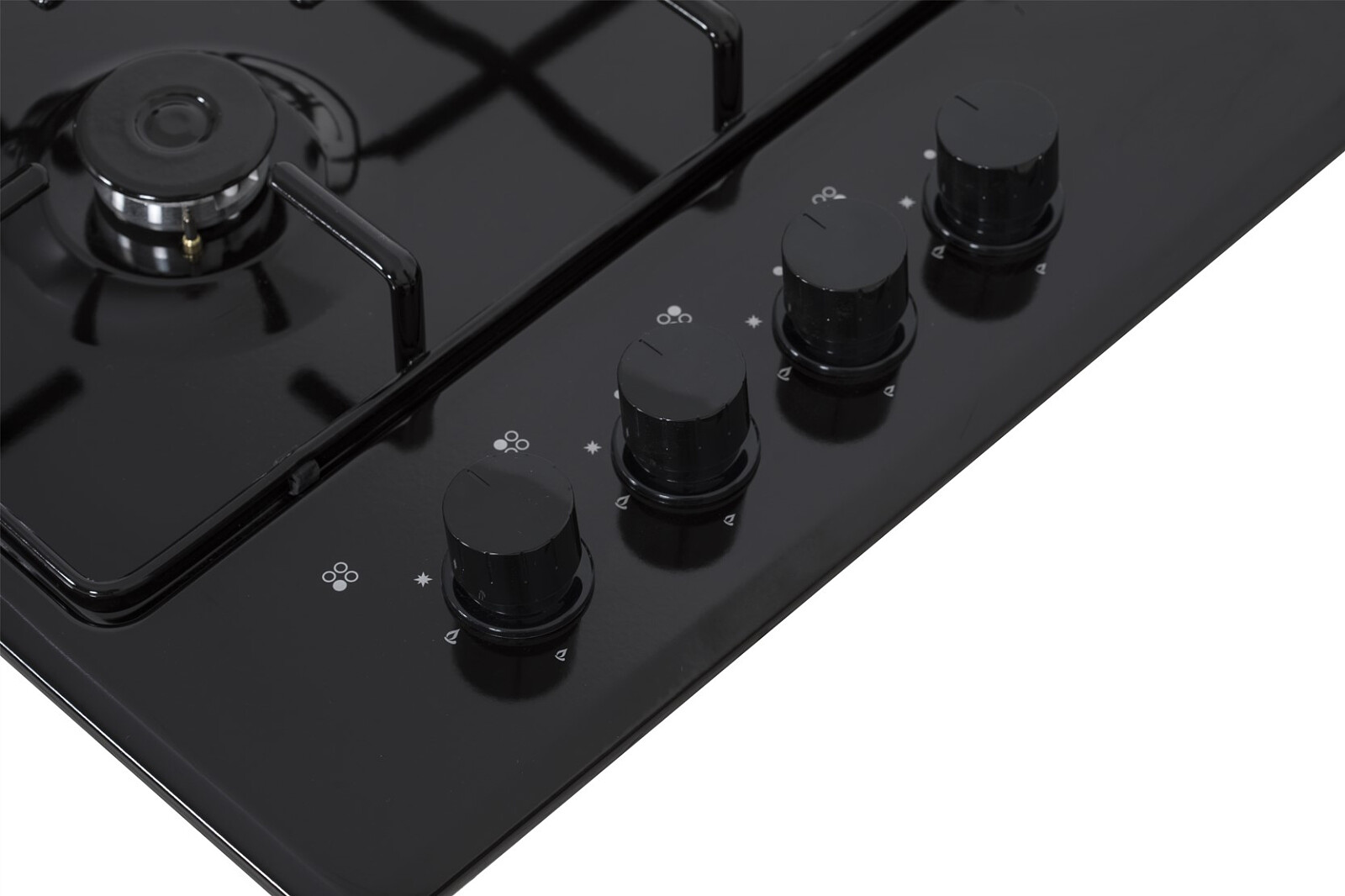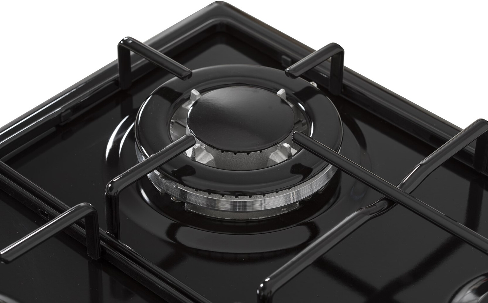 Płyta o szerokości 60 cm i czarnym matowym wykończeniu. Do dyspozycji użytkownika są 4 palniki, w tym palnik turbo o mocy 3500 W. Urządzeniem sterujemy za pomocą pokręteł znajdujących się z boku urządzenia. Płyta została wyposażona w zabezpieczenie przeciw wypływowe gazu, które odcina jego dopływ, gdy płomień przypadkowo zgaśnie.