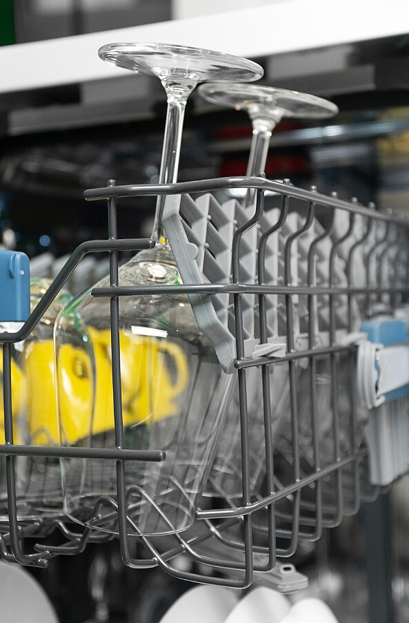Składane uchwyty w górnym, czy dolnym koszu umożliwiają wykorzystanie przestrzeni w zmywarce w ergonomiczny sposób - w zależności od potrzeb oraz rodzaju zmywanych naczyń.