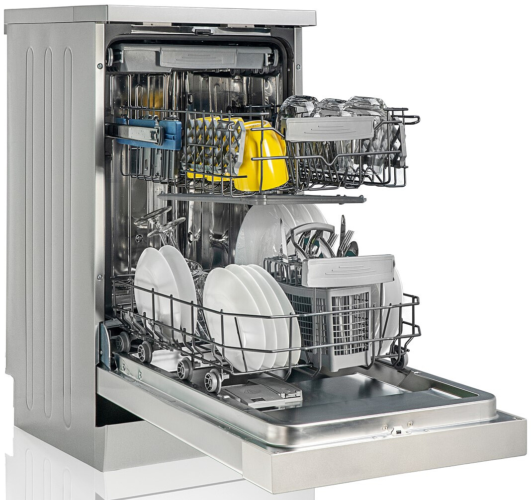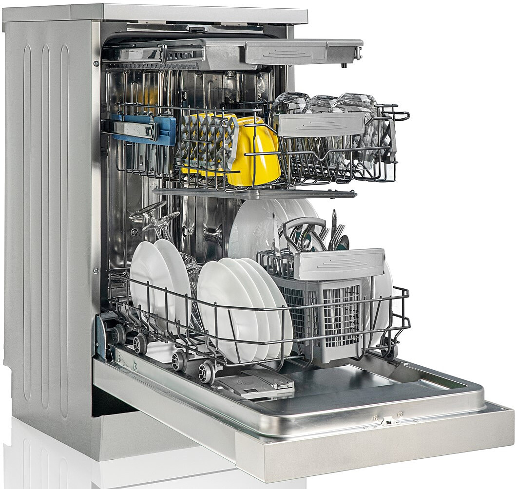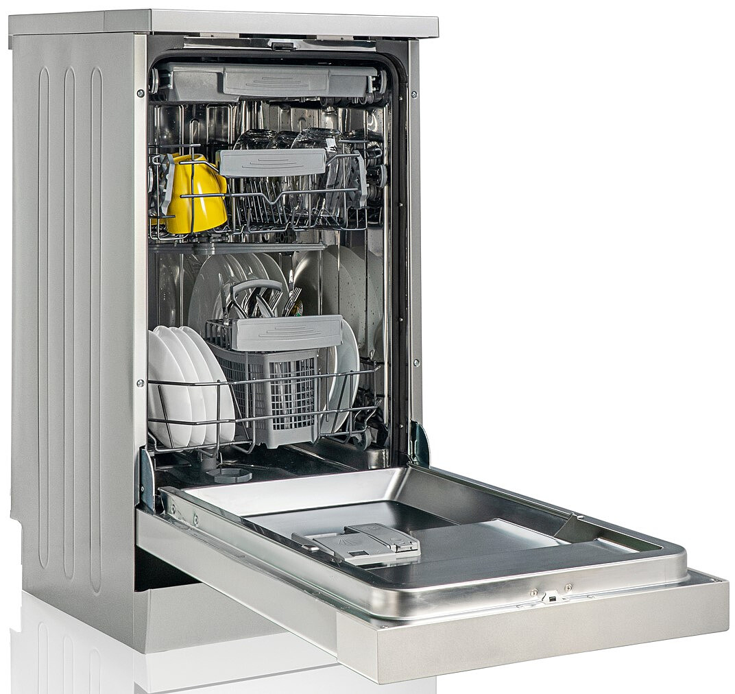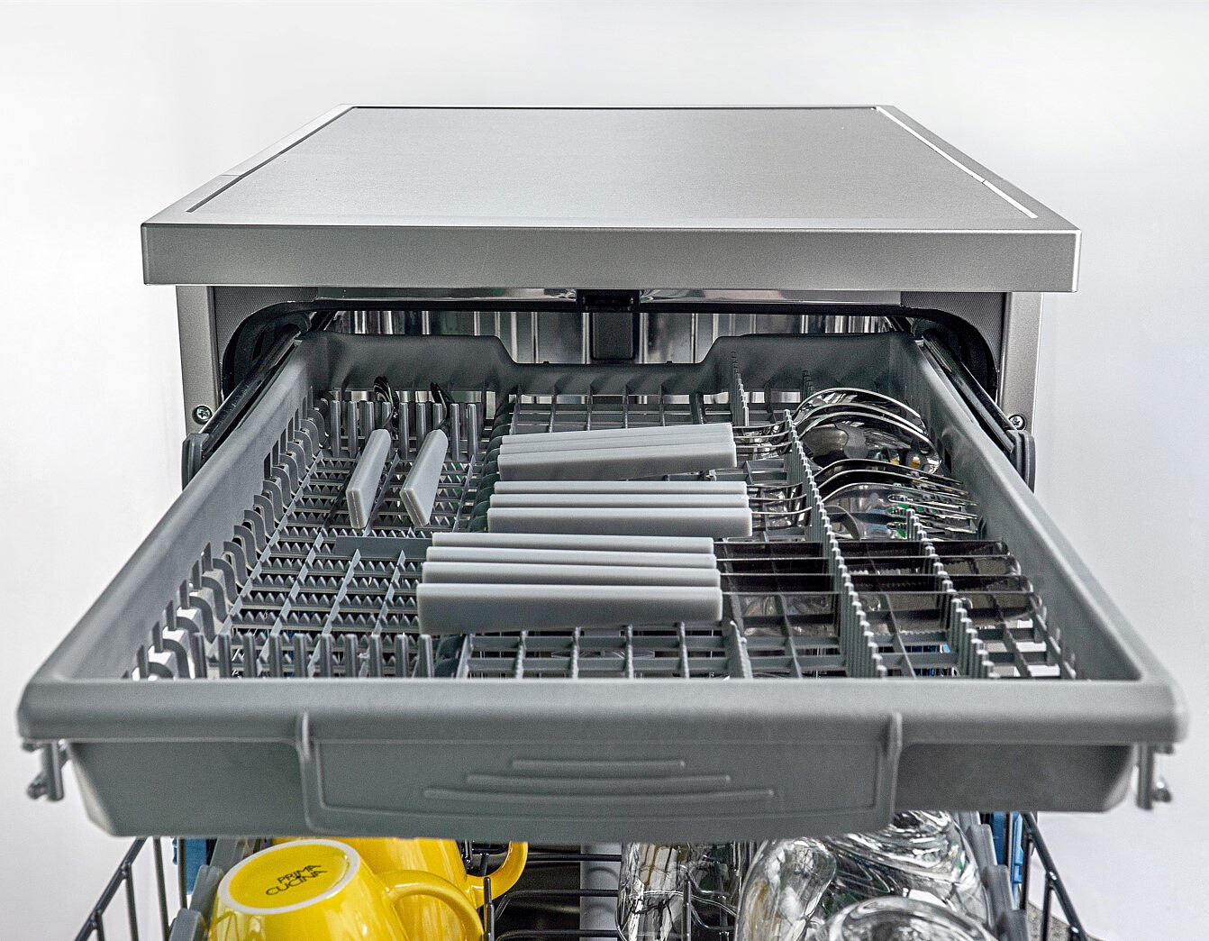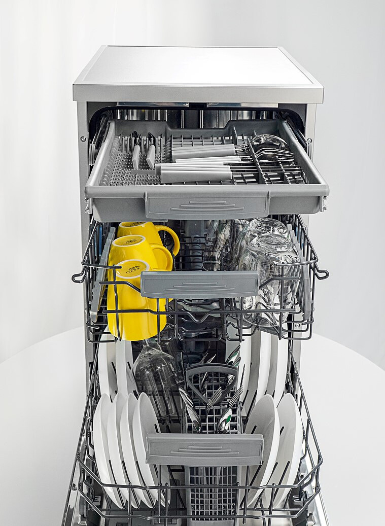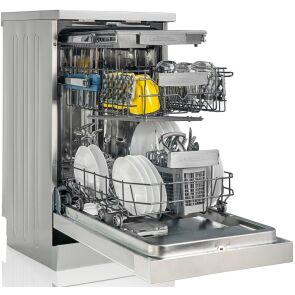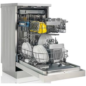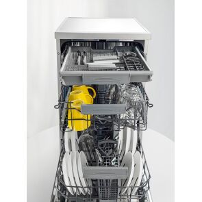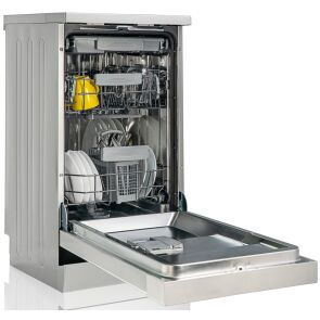 Zmywarka marki Kernau w kolorze srebrnym to urządzenie o szerokości 45 cm. Zmieści się więc w niedużej kuchni. Załadujesz do niej aż 10 kompletów naczyń, które z łatwością rozmieścisz na 3 poziomach koszy. A jeśli chcesz włączyć zmywarkę wcześniej, zanim cała się zapełni, wystarczy że uruchomisz funkcję połowy załadunku. Dzięki temu oszczędzisz swój czas, energię elektryczną oraz wodę. Doskonałe efekty zmywania zapewnia 6 programów o zróżnicowanej temperaturze i intensywności. Ogromną zaletą zmywarki KFDW 4642 X jest program szybki, dzięki któremu już po 30 minutach Twoje naczynia będą czyste. A do wrażliwych na uszkodzenia naczyń znajdziesz specjalny delikatny program.